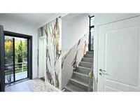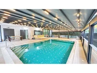 Heated indoor and outdoor swimming pool with a pergola that opens and closes automatically