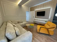 The apartment has a total of 116m2, which are organized into a living room with kitchenette, two bedrooms, storage room, toilet and a 35m2 veranda covered with wooden awnings. The apartment is newly invested with an architect and is furnished in detail with all the conditions for a comfortable life, ready for occupancy or rental. It is located on the 6th floor of a new building with elevator and maintenance. It has regular documentation and is ready for sale. For more information or a visit from nearby, we invite you to contact us!