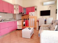 The apartment is located on the 4th floor of a building without an elevator in Golem, about 200m away from the sea. It has a total area of 65m2, of which 60m2 are interior spaces organized by a corridor that connects a living room + kitchen, a bedroom, a bathroom, and a balcony with a sea view. The area where it is located is suitable for vacations as it offers all facilities. For more information or to schedule a property visit, please contact us!