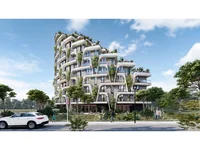 Located along the coast of Kavaja, the 13-story Residence "Tiktaalik" harmoniously connects nature and the built environment. The building's structure develops through a tiered system, where each level opens onto green terraces planted with trees and various vegetation. These natural pockets create a vertical continuity of greenery, blending the architecture with the natural relief of the terrain. The shape of the balconies, modeled in gentle waves, reflects the dynamics of the sea and the surrounding coastline.