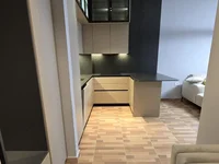 The apartment is located in a modern building, only 5 years old.
