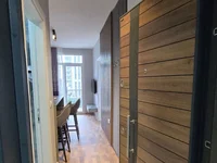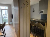 The apartment is located in a modern building, only 5 years old.