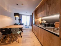 This apartment is part of an exclusive new hotel and apartment complex in Vorarlberg with a total of 42 apartments. The facility is located on a sun-drenched slope in a southeastern location in picturesque Schröcken, with direct access to the Arlberg ski areas - 305 wonderful kilometers of slopes in the largest and most snow-sure 5-star ski area in Austria. It is also in close proximity to Lake Körber, which was named Austria's most beautiful place in 2017.