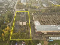 The building consists of an administrative building with a total area of 2412 sq. m, 2 extensions with a total auxiliary area of 3225 sq. m and a basement with an area of 889.6 sq. m.