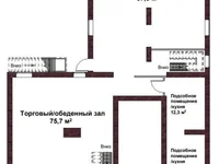 The room occupies the first and basement floors of a residential building and has 3 own entrances, bathrooms, utility / storage rooms are located on the basement, the 1st floor is used as a dining / shopping hall and a kitchen / storage room.