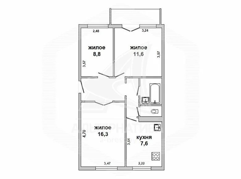 3-room apartment, Malorita, Sovetskaya St., 1975, 4 / 5 panel, 56.0 / 54.7 / 36.7 / 7.6, bathroom separate, balcony, basement, double-glazed windows, wooden interior doors, wooden front door, stretch ceilings (2.5 m), floors - linoleum (located on a screed), walls glued with wallpaper, modern tiles in the bathroom, plumbing pipes, acrylic bath, telephone. Furniture. The apartment is in residential condition. The apartment is located on two sides. The roof has been repaired. Insulation of the side facades of the house. There's a playground in the yard. Take a closer look.
