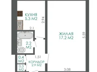 - built -in kitchen with elegant. The design is equipped with a dining set and household appliances: the Indesit plate and the built -in refrigerator of the German company Liebherr.