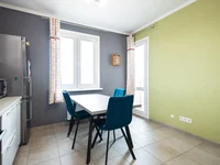 Three separate rooms (17.2 m, 14.9 m, 13.1 m), a separate kitchen of 12.9 sq. m, a glazed and insulated balcony of 10.2 sq. m, a storage room.