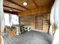 On the land plot owned there are: a bath with a terrace and a rest room, a household building (barai), a greenhouse. The plot is ennobled and developed, a hedge of thuyas, fruit trees, shrubs, flowers, berries, vegetable beds, etc. is planted on the site.
