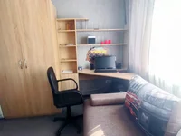 For sale studio apartment (apartments) in the area of Gomel Airport, in the building of the hotel "Flight". Apartment with fresh designer renovation in a warm brick house from 1987. The house after major repairs, all communications, wiring and water supply are new. The apartment has a PVC window overlooking the yard, tiles, linoleum on the floor, new interior and entrance doors. Kitchen set remains at sale, the rest of the furniture by agreement. There's an electric stove, an hood. The sanitary unit is combined, the plumbing is new. The apartment has good heat and sound insulation. There are water meters, lots of outlets. The apartment is completely ready for living. The hall is always clean and orderly, there is a guard and a cleaner. Private property.