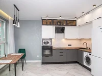 For sale stylish, modern two-bedroom compact apartment with excellent renovation on Alferova street, 9 in the house Lisbon (Western Europe Quarter) on the 23rd floor. Repairs are made qualitatively with love. New furniture and appliances, the apartment is fully ready for living. The floors are laminate and tiles, the ceilings are stretched.