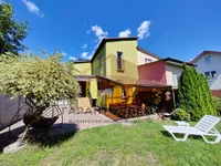 There are gates for the entrance of the car, and there is enough space for two cars in the parking lot next to the house. On the site there is a canopy where you can comfortably spend time in the fresh air with loved ones. In front of the house, the territory is paved with paving slabs, and the emerald lawn is surrounded by adult thuya and decorated with decorative plants. For lovers of gardening there is a special zone for gardening.