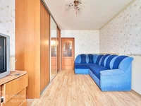 The kitchen has 7.2 m2 on the linoleum floor, tiles on the wall in the working area, and its shape and size make it possible to comfortably spend time with family at the same table.