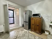 The ceilings are stretched, 2.7 m high. The floor covering is laminate and porcelain. Walls are wallpaper. A big bathroom node.