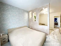 2-bedroom apartment, Brest, Lutskaya str., 2016, 10 / 10 panel, 65.9 / 63.7 / 38.0 / 10.7, bathroom separate, loggia glazed, double-glazed, interior doors - MDF, ceilings - snow (in the room, in the kitchen), stretch gloss (in the room), stretch satin (in the corridor), floors - laminate and tiles (in the bathroom), walls glued with wallpapers, in the bathroom, a modern slablace, in the room, a rooftop, replaced. Kitchen set, built-in wardrobes in the corridor and in the nursery. The apartment is well renovated. The apartment is located on two sides. Windows overlook the park, square, green area. A vestibule for two apartments. One passenger lift. There's a technical floor. In the yard there is a playground, parking for cars. Take a closer look.