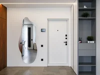 On a semi-parquet board and porcelain, high-quality lighting, many places for storage.