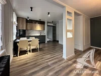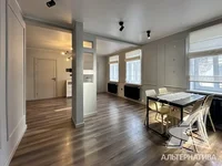 Urgent! 3-room apartment, Brest, Budenny St., 2 / 2 floor, 62.0 / 62.0 / 33.1 / 10.5, combined bathroom, double-glazed windows, metal front door, stretch ceilings with a diverse lighting system, floors - laminate (located on a screed), decorative paint on the walls, modern tiles in the bathroom, plumbing pipes are replaced, a boiler is installed, a new electrical wiring, air conditioner, telephone is installed. Kitchen set, oven, cooking surface, dining group, closet in the bedroom, children's bed and sets with cabinets. Apartment with individual design solutions. There's a separate street entrance. Attic. Take a closer look.