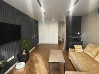 - The bedroom is pleasing with peace and comfort. One of the walls has additional soundproofing, protecting from neighbors, and from the window offers a picturesque view of the sunset. The room has a double bed, a large wardrobe and a separate dressing area.