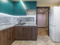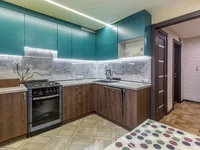 Kitchen: 9.1 m2 fully furnished, installed all necessary furniture and appliances. Oven cabinet, gas panel, dishwasher, hood, there is space for installing a microwave oven. Due to the angular location, you have a large amount of workspace, and this is a paradise for a real hostess. The kitchen area and competent location allowed to organize a working area and a eating area.