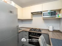 Renovated apartment. PVC windows are installed, including balcony glazing. Floor covering: laminate, tile. In the bathroom tiles of current design, new plumbing. Built-in kitchen with machinery. There's a roomy wardrobe in the room.