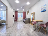 The layout is made in such a way that you have a full-fledged isolated room for rest and a spacious living room with kitchen equipment.