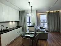 Modern, premium materials were used in the decoration. Metal front door, modern furniture in pleasant colors, all equipment built-in (dishwasher, microwave, refrigerator), there is a TV, washing machine, air conditioning.