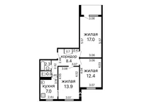 Rational layout: isolated living rooms, spacious corridor, separate bathroom. The windows face on different sides of the house, which makes the apartment visually even brighter and more spacious.