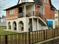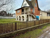 The house is 3-storey, insulated and covered with brick. Heated by a stove. There is a garage on the ground floor. On the second floor: veranda, kitchen and a separate room. The attic is on the third floor.
