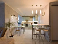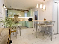 - Built-in appliances in the kitchen: oven, cooking surface, exhaust system, dishwasher and comfortable bar counter;