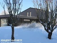 The main two-level house with a total living area of 176.4 m2 consists of two intersecting pavilions, one with a pitched roof and the other with a flat one. Inside: spacious hall with mirrored cabinets, living room with fireplace, dining room with kitchen equipment, four bedrooms, bathroom, combined guest bathroom and utility rooms.