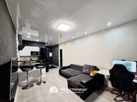 Apartment on the sixteenth floor. Panoramic view. The loggia is insulated. Floors, laminate, tiles. Built-in kitchen with machinery. Equipped dressing room. Metal entrance.