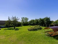 A flat rectangular area with a fruit garden. There is a gazebo for gatherings and a separate garage (40 m2) with a full cellar.