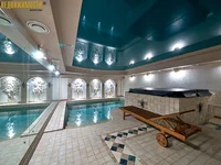 Ground floor: billiard room with recreation area and musical acoustic system. Pool complex with sauna, bathroom, jacuzzi. Made in the style of Roman baths with natural marble finishing. Lepnina and lamps are made according to an individual project.
