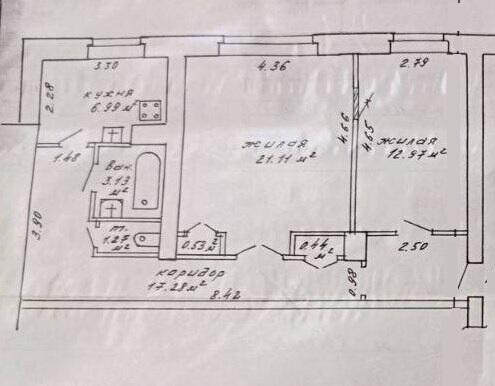 The total area of the apartment is 63.72 m2 on the National Security Council - m2 (living area - 34.08 m2, kitchen - 6.99 m2) ceiling height of 2.95 m, metal front door.