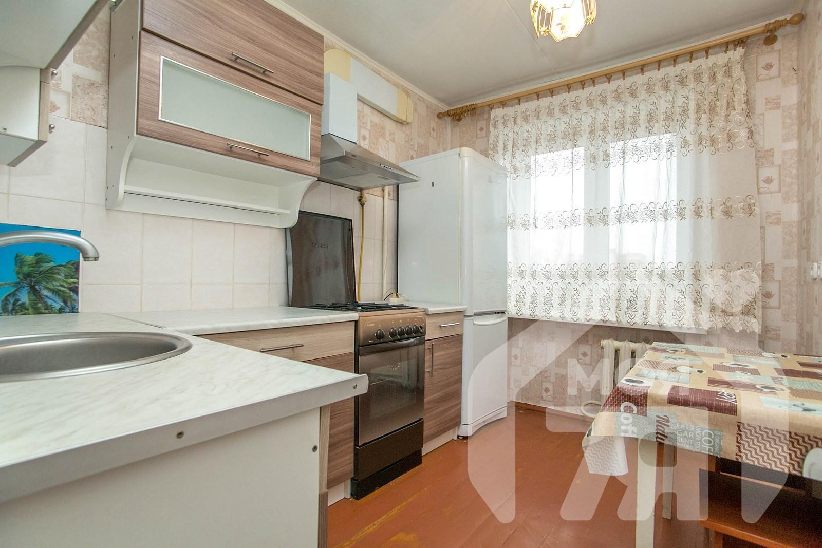- The kitchen area of 7.1 m2 is fully equipped with the necessary appliances and furniture: kitchen set, gas stove for cooking, hood for comfortable ventilation and refrigerator, all this remains for the new owner. This allows you to start a full home life at no additional cost.