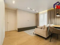 Floating stretch ceilings with lighting and built-in mirrors, Qucstrep laminate and Keramomarazi tiles create comfort and coziness. Built-in appliances: Bosh cooking panel and oven, Samsung dishwasher, LG washing machine. All cranes and door handles are made in satin color, which adds elegance to the interior.