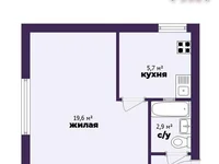 - One-bedroom apartment on the 4th floor of a 5-storey brick house built in 1966. The total area is 29.9 m2, residential - 19.6 m2, kitchen - 5.7 m2. Apartment with normal repair: PVC windows, laminate floor in all rooms, stretch ceilings. Spacious room 19.6 m2 with stylish wallpaper, remains a comfortable sofa. Kitchen 5.7 m2 with a functional headset and gas stove remains as a gift to new owners. A combined bathroom saves space. The apartment is completely ready for living – come and live!