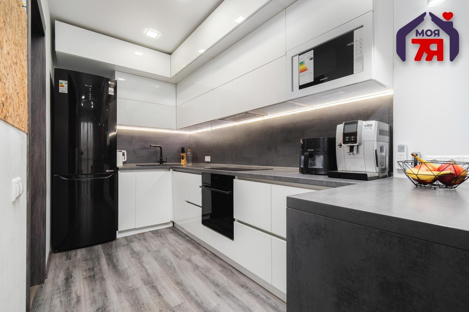 -Equipment and equipment: Samsung induction cooking surface (energy efficient, quick heating, easy cleaning), Samsung oven (convection, timer, stylish design), Samsung built-in microwave oven (compact, powerful), LG refrigerator (inverter compressor, saves electricity, large volume), Bosch dishwasher 45 cm (European quality, quiet operation, many programs).