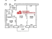 The total area of the apartment on the SNB 43.3 sq.m., total living area 42.6 sq.m., living area 31.6 sq.m. (17.6 sq.m.++ 14.0 sq.m.). Kitchen area 5.6 sq.m. Corridor area 2.3 sq.m. Engineering communications: central water supply and sewerage, central power supply, central gas supply, hot water supply from an electric boiler.