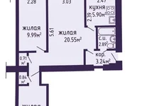 -3-room apartment 55.26 m2 (residential 41.68 m2) on the first floor of a 5-storey building. The layout is convenient, the windows face on both sides of the house.