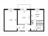 The total area of the apartment is 52.4 square meters, residential - 30.2 square meters, and a spacious kitchen - 9 square meters. The ceiling height is 2.5 meters. The apartment is offered with renovation in good condition, which will allow the new owners to immediately settle in.Installed double-glazed windows, a reliable metal door, water meters, and also connected intercom. Sanuzel is separate, which is a convenient solution for the family.