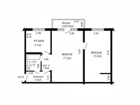 The apartment is located on the 4th floor. Total area: 44.2 sq.m., living area: 30.6 sq.m. Kitchen area: 5.7 sq.m. Ceiling height: 2.52 m.