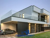 The two-storey mansion with an area of 528.3 sq.m. is safely located on a monolithic foundation on stilts, buried by 6 meters. Ceramsytoconcrete blocks together with monolithic ceilings give the house greater reliability. Operated roof creates additional comfort and convenience. The groundwater reduction system was laid taking into account the coastal location. The foundation of the fence is also buried by stilts for 3 meters. The gas is brought to the site, the well provides water supply, and the septic tank takes care of the environment.