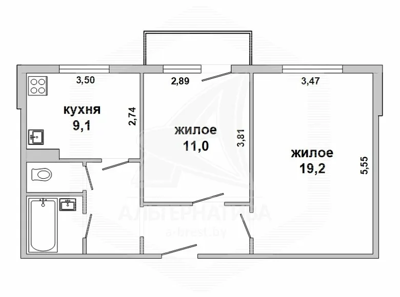 2 room apartment 53 m² Damacauski sielski Saviet, Belarus