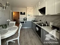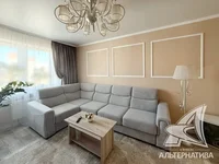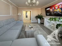 3-room apartment, Brest, Kolesnika Street, 2021, 8 / 11 panel, 79.3 / 76.7 / 47.4 / 10.5, separate bathroom, loggia glazed, double-glazed windows, interior doors - MDF, stretch ceilings, floors - laminate, decorative paint on the walls (in the hall) and wallpaper, modern tiles, telephone, intercom. All furniture and equipment by arrangement. The apartment is located on two sides. One passenger elevator. Video surveillance system (elevator, entrance, parking, yard). Take a closer look.