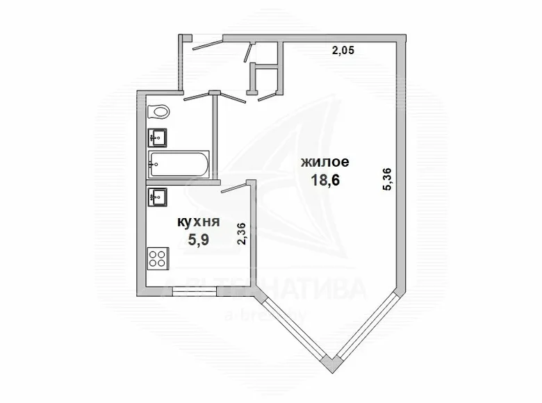 1-bedroom apartment, Brest, Masherov Avenue, 1968, 3 / 5 brick, 30.4 / 30.4 / 18.6 / 5.9, combined bathroom, double-glazed, wooden interior doors, metal front door, ceilings - whitewash, floors - chipboard, bathroom walls painted, telephone, intercom. The apartment was partially renovated. Take a closer look.
