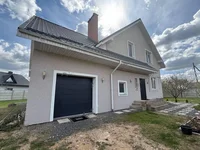 The foundation is monolithic/reinforced concrete. The walls are made of gas-silicate blocks, insulated in the Thermoshoe system, decorative protective and finishing plaster and facade paint resistant to atmospheric influences are applied. The roof is a multi-sided, high-quality metal tile of the German production of the Thyssen Krup concern. Central engineering communications: power supply 220/380, gas in the house, heating - gas boiler / water warm floors under the tile. Water supply is central, sewerage is central. High-speed fiber optic Internet from Beltelecom. Security alarm.