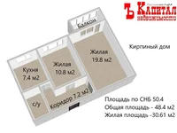 Living rooms of comfortable footage (10.8 and 19.8 m2), the kitchen (7.4 m2) allows you to place everything you need on it.