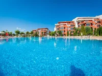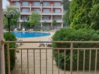 Apartment Studio With a terrace, full decoration and furniture. Type on the pool and greens.