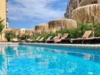 Sunny View Central is a gated complex, located about five minutes walk from two beaches - Cocoa Beach and Bedrum. The area has good infrastructure and communication. Nearby there is a supermarket, shops, restaurants, cafes, pharmacy, medical center, summer attractions, currency exchange offices, bus stop. Within walking distance is the historic town of Nessebar. We offer you for sale a cozy studio in the Sunny View Central complex. The studio is located on the second floor with an area of ​​27 sq.m. Layout - hallway, room with kitchenette and seating area, bathroom with toilet and balcony. The apartment is bright. Suitable for year-round living and renting. Infrastructure and facilities in the complex: 24-hour reception service (in the summer); 24-hour room service; 24-hour security; restaurant; cafe and lobby bar shops; outdoor pool with showers children's pool; rooftop jacuzzi; wet bar; Spa center with sauna, jacuzzi, steam bath, solarium, massage room, relaxation area; fitness center; hair and beauty salon; children's playground; guarded parking. Annual service tax of 10 euros/sq m.